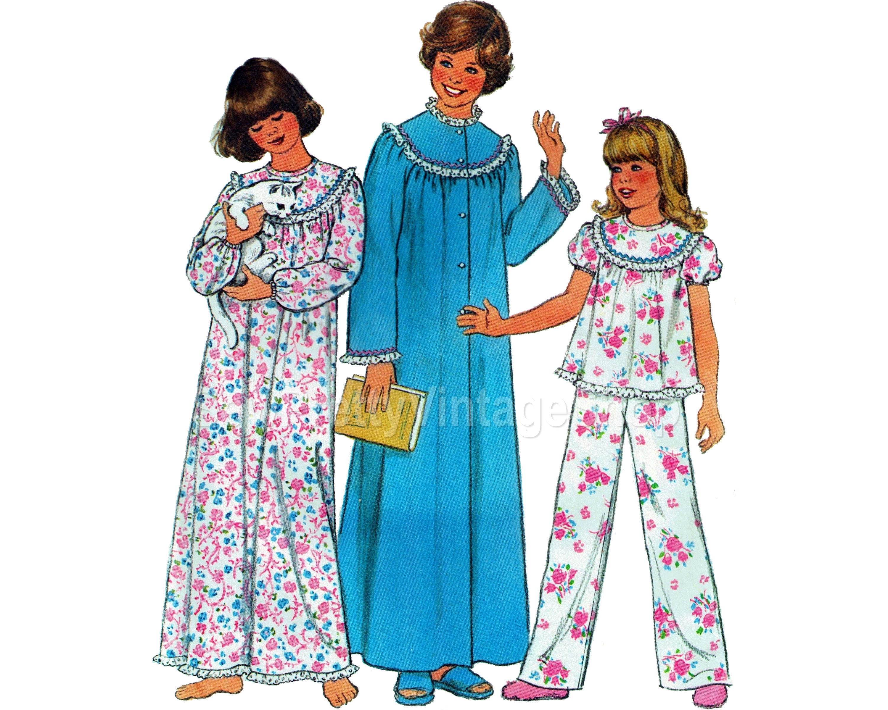 Simplicity 8697 70s Girls Nightgown Two Piece Pajamas Pattern Uncut Size 7 8 Breast 26 27 Childs Vintage Sewing Pattern Pattern Gate